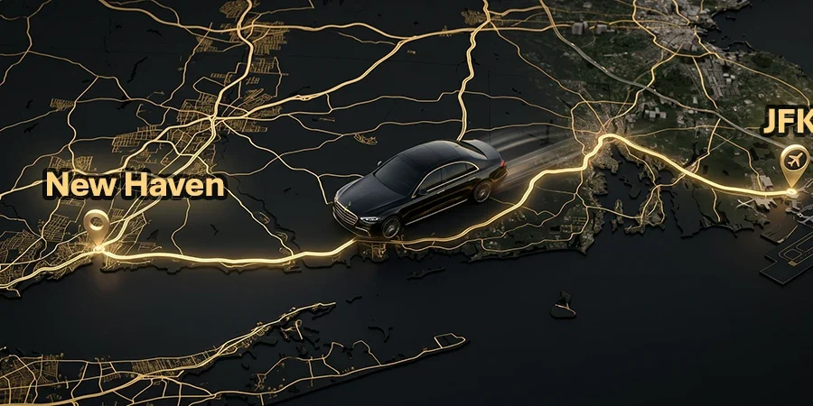 The trip from New Haven to JFK Airport is an 80-to-85-mile trip that looks simple on a map but gets complicated fast. The route crosses state lines, hits major traffic bottlenecks, and requires navigating New York’s public transit with luggage.