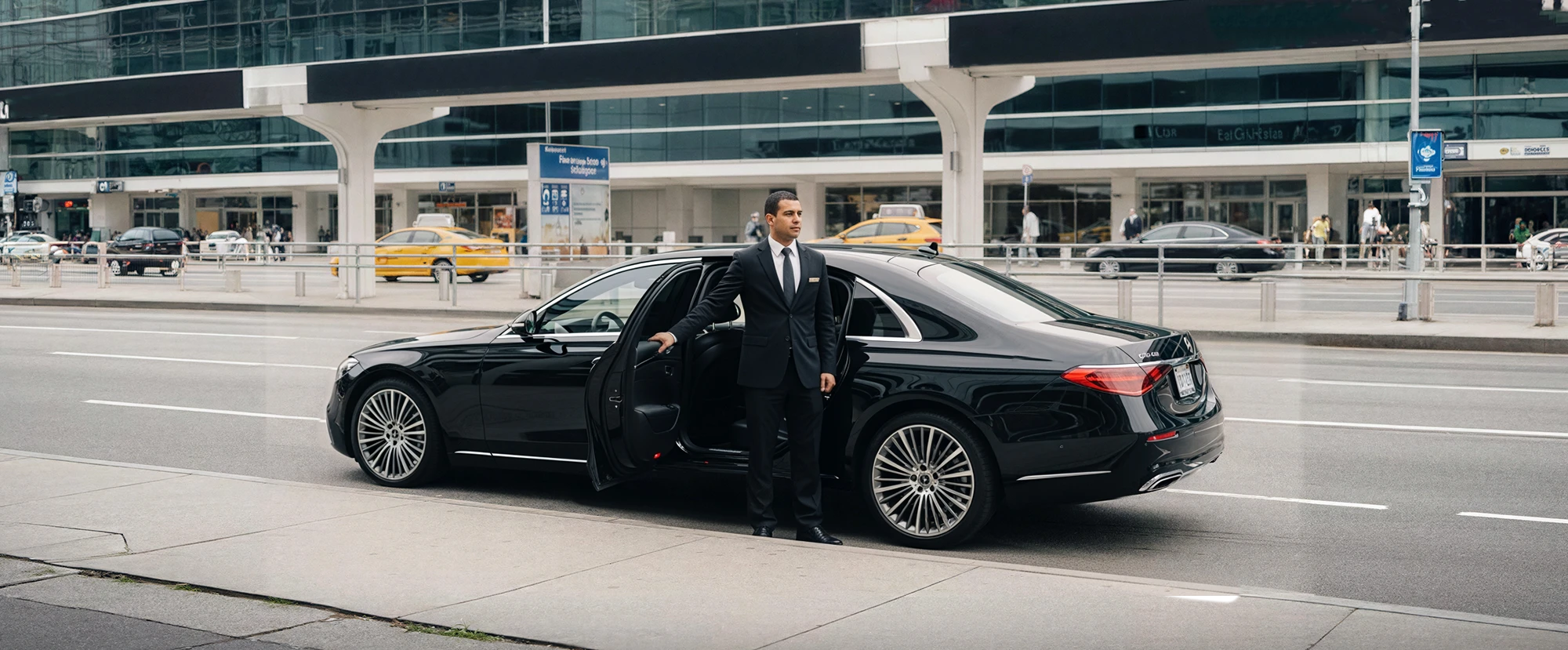 - Chauffeured Meet-and-Greet: Chauffeur meets you at the terminal with your name sign